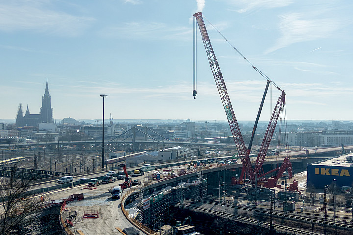 Die Stadt Ulm erlebt ihre wohl bisher größte Baustelle. Für den Neubau der Wallstraßenbrücke wird nun die westliche Hälfte abgerissen. Ein riesiger Kran hebt ab Freitag tonnenschwere Betonteile heraus. Das Projekt ist eine enorme technische und logistische Herausforderung.