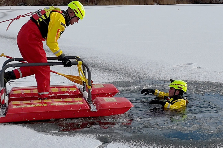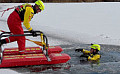 DLRG übt am Erbacher Baggersee und warnt: Natürliche Eisflächen sind trügerisch und lebensgefährlich