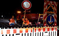 Pünktlich um 21 Uhr rollte der Sicherungsanhänger des städtischen Baubetriebshofs an. Vorbereitete Warnbaken wurden positioniert, gelbe Fahrbahnmarkierungen angebracht.