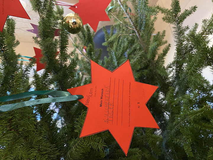 befestigen. Wer einen dieser Wünsche erfüllen möchte, kann eine Wunschkarte abnehmen, das darauf vermerkte Geschenk besorgen und es anschließend zusammen mit der Karte am Empfang im Neu-Ulmer Rathaus abgeben.