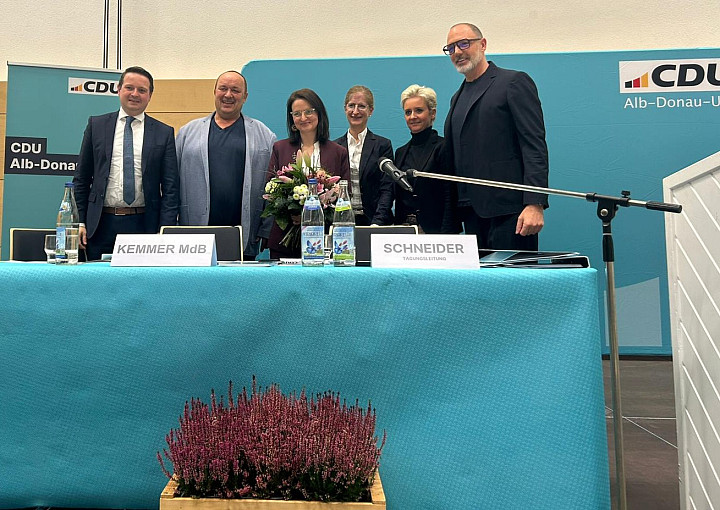 Etwa 150 Christdemokraten konnte die Kreisvorsitzende Ronja Kemmer beim Kreisparteitag in Westerstetten begrüßen. Der Parteitag war zugleich der Auftakt für die Landtagswahl am 8. März 2026. „Wir haben eine historische Wahl vor uns, die die Weichen für die nächsten zehn bis 15 Jahre stellt“, betonte die Kreisvorsitzende Ronja Kemmer. „Wir wollen den Ministerpräsidenten stellen und wir wollen in Ulm wieder das Direktmandat gewinnen“.