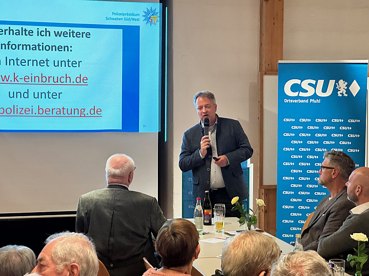 Nepper - Schlepper - Bauernfänger – hieß es mal früher, denn mittlerweile sind Verbrecher und Betrüger professionell unterwegs und gehen mit Arglist und Täuschung, aber auch mit modernster Technik vor. „Sicherheit im Dialog“ hieß dazu eine spannende Veranstaltung der CSU-Ortsgruppe Pfuhl im Museumsstadel Pfuhl. Zu Gast war CSU-Orts- und Kreistagskandidat Jürgen Salzmann, der im Hauptberuf Polizist (Erste Kriminalhauptkommissar) und stellvtr. Dienststellenleiter der Polizeiinspektion Neu-Ulm ist und als Leiter des Kommissariats 2 die Verbrechen wie Raub, Erpressung, Betrug und Einbruchsdelikte, Fälschungsdelikte und Geldwäsche im Fokus hat.