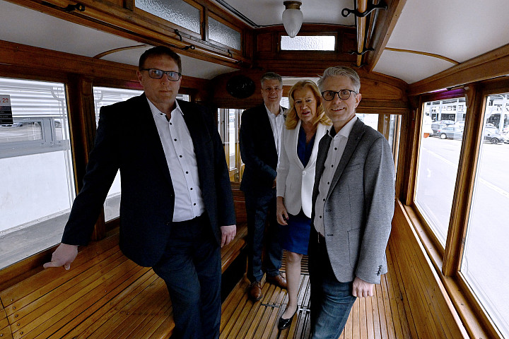 Die älteste erhaltene Straßenbahn Ulms fährt künftig mit neuem Erscheinungsbild durch die Stadt: Der historische Wagen 13 hat eine Werbebeklebung der Ulmer Traditionsbrauerei Gold Ochsen erhalten. Die SWU stellte das frisch gestaltete Fahrzeug nun auf ihrem Betriebshof in der Bauhoferstraße vor.