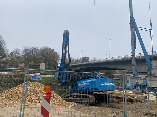 Zahlreiche Kampfmittelverdachtsfälle durch im Baugrund befindliche Bauabfälle von der Herstellung der Adenauerbrücke in den 50er Jahren erschweren die Freigabe der Bauflächen erheblich. Aufgrund der im Baugrund befindlichen Bauteile sowie der abweichenden geologischen Verhältnisse waren in einigen Bereichen zunächst Austauschbohrungen erforderlich, bevor die vorgesehenen Spundwände gerammt werden konnten.