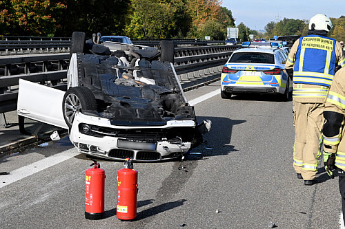 Auto landet bei spektakulärem Unfall auf der A7 bei Nersingen auf dem Dach - kilometerlanger Stau