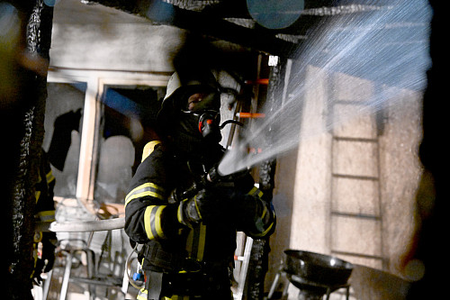 Kurz vor halb drei Uhr morgens sprachen die ersten Anrufer am Feuerwehr-Notruf vom Brand einer angebauten Terrassenüberdachung. Schon auf der Anfahrt zur Einsatzstelle bemerkten die anrückenden Feuerwehrleute die dafür viel zu starke Rauchentwicklung und forderten weitere Einsatzkräfte nach. Vor Ort brannte es nicht nur auf der Terrasse, sondern die Flammen wüteten auch im Wohnzimmer, Rauch zog durch das ganze Gebäude und auch das Gebüsch des Nachbarn brannte lichterloh. Die Bewohner konnten sich rechtzeitig ins Freie retten, doch die Haustiere waren noch im Gebäude. Neben einem massiven Löschangriff im Erdgeschoss und im Garten suchten die Feuerwehrleute unter Atemschutz im Gebäude nach den Tieren.
