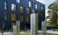 BMS_Preis_Kunstwerk: Skulptur „o.T.“ von Jasper Bamberger zu Ehren von Dr. Barbara Mez-Starck vor dem gleichnamigen Gebäude