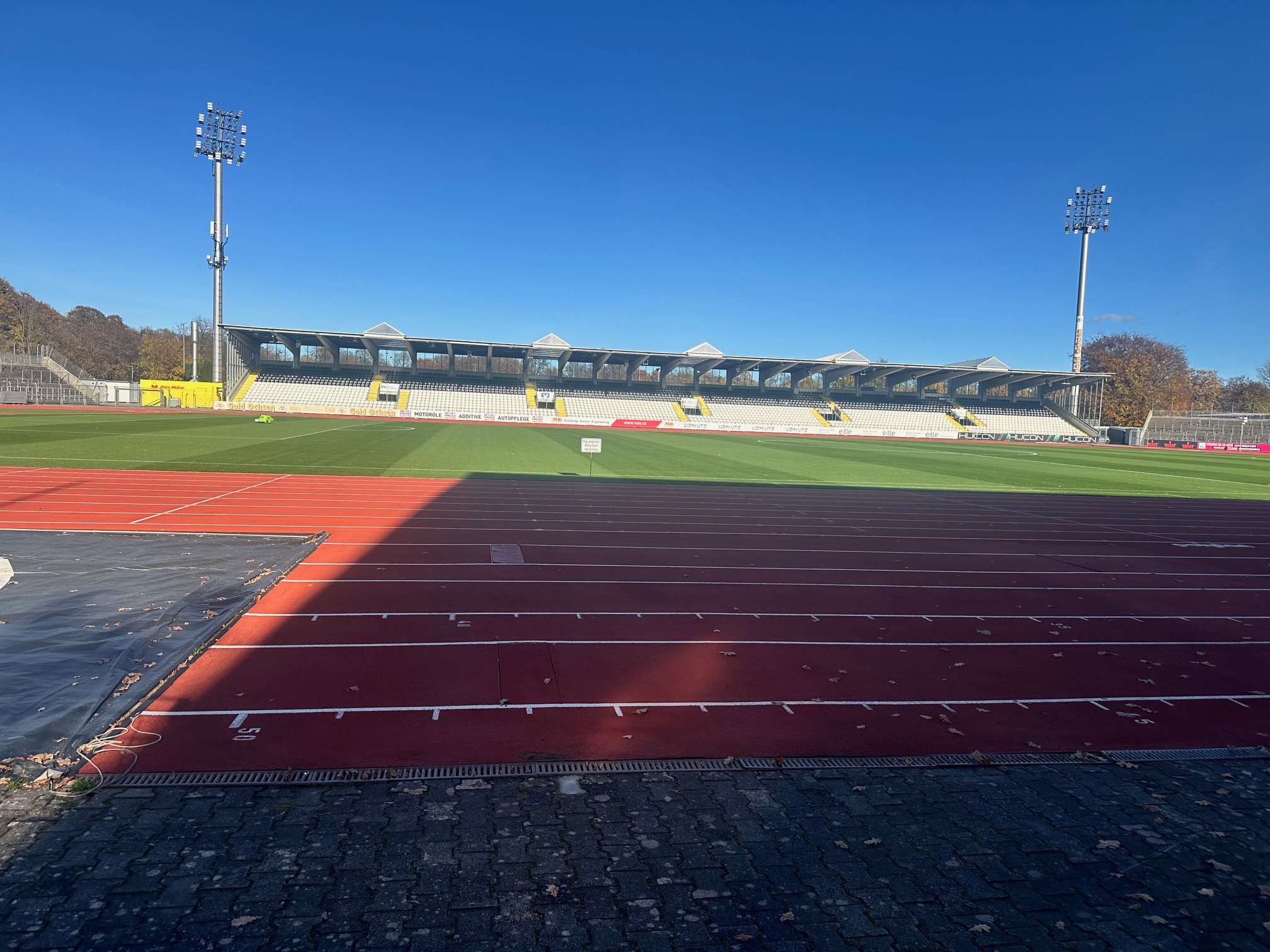 Der Linienroboter rollt schon übers Feld (siehe Foto). Die Linien werden akkurat gezogen, schließlich soll für kommenden Samstag gegen den VfB II alles tip-top sein, so wie es derzeit eigentlich gar nicht ist:  Denn Fast wär` man versucht zu sagen: endlich hat`s mal heute einer ausgedrückt, was beim SSV Ulm 1846 Fußball bislang nicht klar benannt wurde (hätte werden sollen). Bislang hieß es : man wolle eine gute Rolle in der 3. Liga spielen, die ja im Übrigen eine Trainerliga sei, also dass die Systematik und die Taktik des Trainers wichtiger ist als die Klasse der Spieler. Die werden das Erfolgskonzept dann schon umsetzen, so hieß es jedenfalls in etwa vor der Saison. Doch nach einer Trainerentlassung nach nur sechs Spieltagen weiter, weil offenbar die Entwicklung der Mannschaft nicht so richtig vorwärts ging, nach vier tragischen Kreuzbandrissen, die das Stammpersonal an guten Kickern der Spatzen empfindlich dezimiert haben und nach drei bitteren Niederlagen in Folge, die gemeinhin dazu neigen könnten, dass sich die Abwärtsspirale der Spatzen-Mannschaft – ähnlich wie im vergangenen Jahr – fortsetzt und dann eben dort endet, wo die letzten vier Plätze dafür ausreichen: zusammen auf Augenhöhe mit dem FV Illertissen um Regionalliga-Weihen zu kämpfen (bekanntermaßen allerdings in zwei verschiedenen Ligen). Da, ja da hat heute Cheftrainer Moritz Glasbrenner – als gelernter Chirurg – mit klarer Sprache und unmissverständlich das Skalpell angesetzt und die OP eingeleitet:
