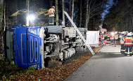 Da der Weg für beide Fahrzeuge zu schmal war, wichen beide nach rechts aus. Der Waldboden neben der Fahrbahn war zu weich, um den Lkw und tragen und der Lastwagen kippte um. Aufgrund des ersten Notrufs musste befürchtet werden, dass der Lkw-Fahrer in seinem Führerhaus eingeschlossen ist, daher wurden zahlreiche Feuerwehrleute alarmiert. Neben den Feuerwehren aus Laichingen, Suppingen, Machtolsheim und Berghülen auch die Feuerwehr Ulm. Aus Ulm kam der Mobilkran der Feuerwehr nach Suppingen, um gegebenenfalls den Lkw anheben zu können.
