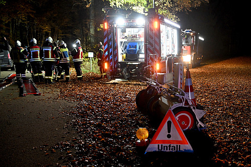 Da der Weg für beide Fahrzeuge zu schmal war, wichen beide nach rechts aus. Der Waldboden neben der Fahrbahn war zu weich, um den Lkw und tragen und der Lastwagen kippte um. Aufgrund des ersten Notrufs musste befürchtet werden, dass der Lkw-Fahrer in seinem Führerhaus eingeschlossen ist, daher wurden zahlreiche Feuerwehrleute alarmiert. Neben den Feuerwehren aus Laichingen, Suppingen, Machtolsheim und Berghülen auch die Feuerwehr Ulm. Aus Ulm kam der Mobilkran der Feuerwehr nach Suppingen, um gegebenenfalls den Lkw anheben zu können.