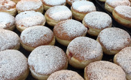 Eine Kiste mit 24 Krapfen gibt es zum Preis von 46 €. Bei einer Bestellung von drei Kisten zahlen Sie 44 € pro Kiste. Ab einer Bestellung von 10 Kisten zahlen Sie 40 € pro Kiste.