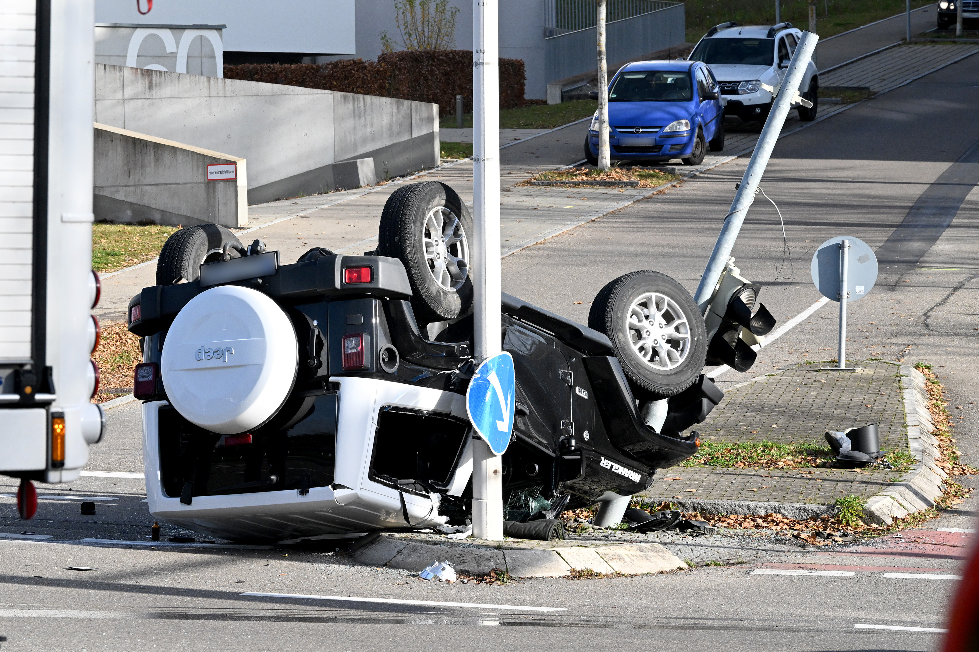 Abschleppwagen mussten den Jeep und den Nissan bergen, den Sachschaden schätzt die Polizei auf rund 60.000 Euro. Die Ampelanlage an der Kreuzung muss mit einem neuen Mast versehen werden, solange bleibt die Anlage außer Betrieb.