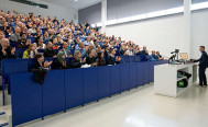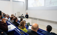 Foto 3: Voller Hörsaal bei der Keynote von Benjamin Gnahm.