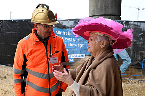 Oberbürgermeister Martin Ansbacher sprach von einem historischen Tag. „Das ist derzeit das größte Projekt der Stadt", erklärte er. Minister Hermann setzte noch einen drauf. „Das ist das größte Projekt in Ulm nach dem Bau des Ulmer Münsters.“ Baubürgermeister Tim von Winning erklärte die Vision. Er nannte die B10 einen „Urban Canyon". Die Straße zerschneide die Stadt. „Es muss gelingen, diese Schlagader verträglicher in die Stadt einzubauen", sagte er. Das sei nicht einfach. In den letzten drei Jahren gab es eine der höchsten Baupreissteigerungen in der Geschichte des Landes. Projektleiter Gerhard Fraidel von der Stadt Ulm hatte einen besonderen Tag. Er feierte Geburtstag. Der Oberbürgermeister überreichte ihm ein Geschenk: einen goldenen Bauhelm mit aufgeklebter Brücke. Tunnelpatin Helga Malischewski, eine Alt-Stadträtin, bekam einen rosa Bauhelm mit Schaufel. Brückenpate Jürgen Eismann, Filialleiter von IKEA Ulm und Nachbar der Baustelle, erhielt einen Helm mit Bagger.