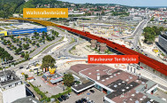 Aktuell wird ein zweiter Fußgänger-/Radfahrersteg (siehe Grafik Nr. 2) vor Ort gebaut. Durch das Traggerüst bleibt die Fahrbahn noch bis Februar 2026 eingeengt. Für den Abbruch der westlichen Wallstraßenbrücke von Mitte Februar bis Mitte April 2026 wird dieser Steg dann als Umleitung benötigt.