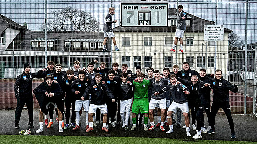 Nun ging das große Zittern los. Für Platz 2, der die direkte Qualifikation bedeuten würde reichte es leider nicht. Aber durch den Sieg von Bayern München gegen Freiburg hatte die U19 zumindest Platz 3 gesichert. Aus den 9 Gruppen qualifizieren sich zusätzlich die besten 6 Drittplatzierten. 4 davon waren schon qualifiziert, daher blieben nur noch 2 Plätze übrig. 20 Minuten nach Spielende stand die Mannschaft noch geschlossen auf dem Platz und wartete vergeblich auf das letzte Ergebnis aus Köln. Als der Kapitän, der Jungspatzen, Danny Willams der im Sommer von Köln zu der U19 gestoßen ist, von seinen alten Kollegen das Ergebnis übermittelt bekommen hat, war der Jubel groß.