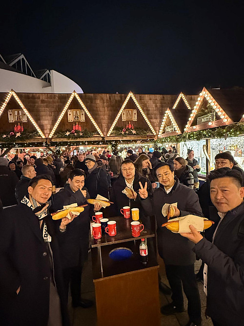 Beschreibung: Die chinesischen Wirtschaftsexperten auf dem Ulmer Weihnachtsmarkt. i