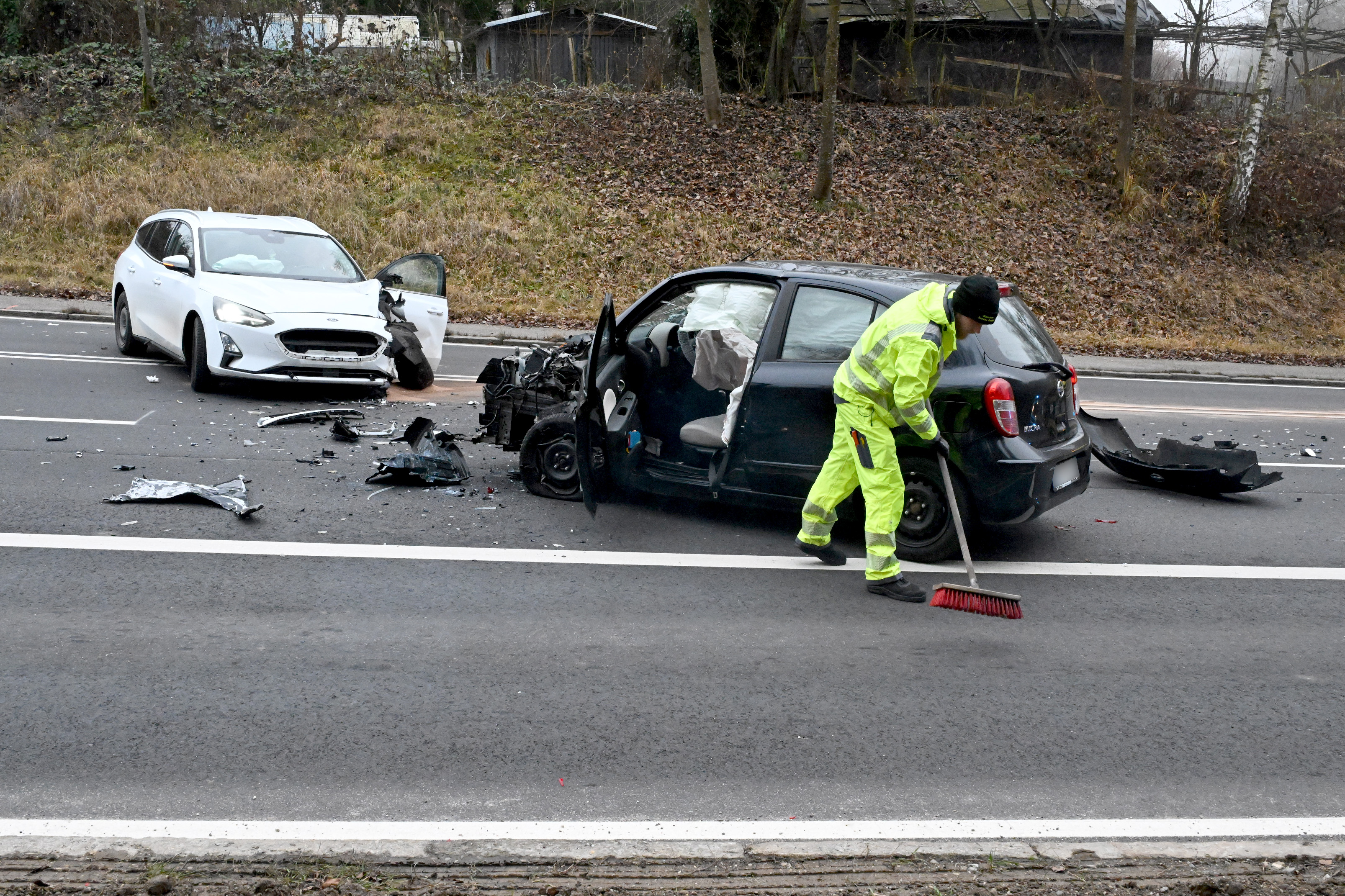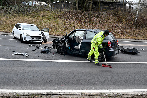 Der Rettungsdienst brachte beide in Krankenhäuser, zwei Rettungswagen waren dazu im Einsatz. Der Taxifahrer und sein Fahrgast blieben genauso wie der VW-Fahrer unverletzt. Die Feuerwehr musste auslaufende Flüssigkeiten abbinden. Die Polizei leitete den Verkehr an der Unfallstelle vorbei. Es gab nur eine Spur für beide Richtungen. Zwei Abschleppwagen bargen den Ford und den Nissan, die Behinderungen dauerten eineinhalb Stunden.