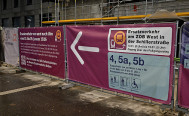 Seit November 2024 war er außer Betrieb, nun wurde er für die Bauarbeiten reaktiviert. Offenbar ohne ausreichende Vorbereitung. Dutzende Transparente wurden aufgehängt, um vom Bahnhof den weiten Weg zur Haltestelle zu weisen, doch an der Haltestelle selbst endete die Planung zu früh.