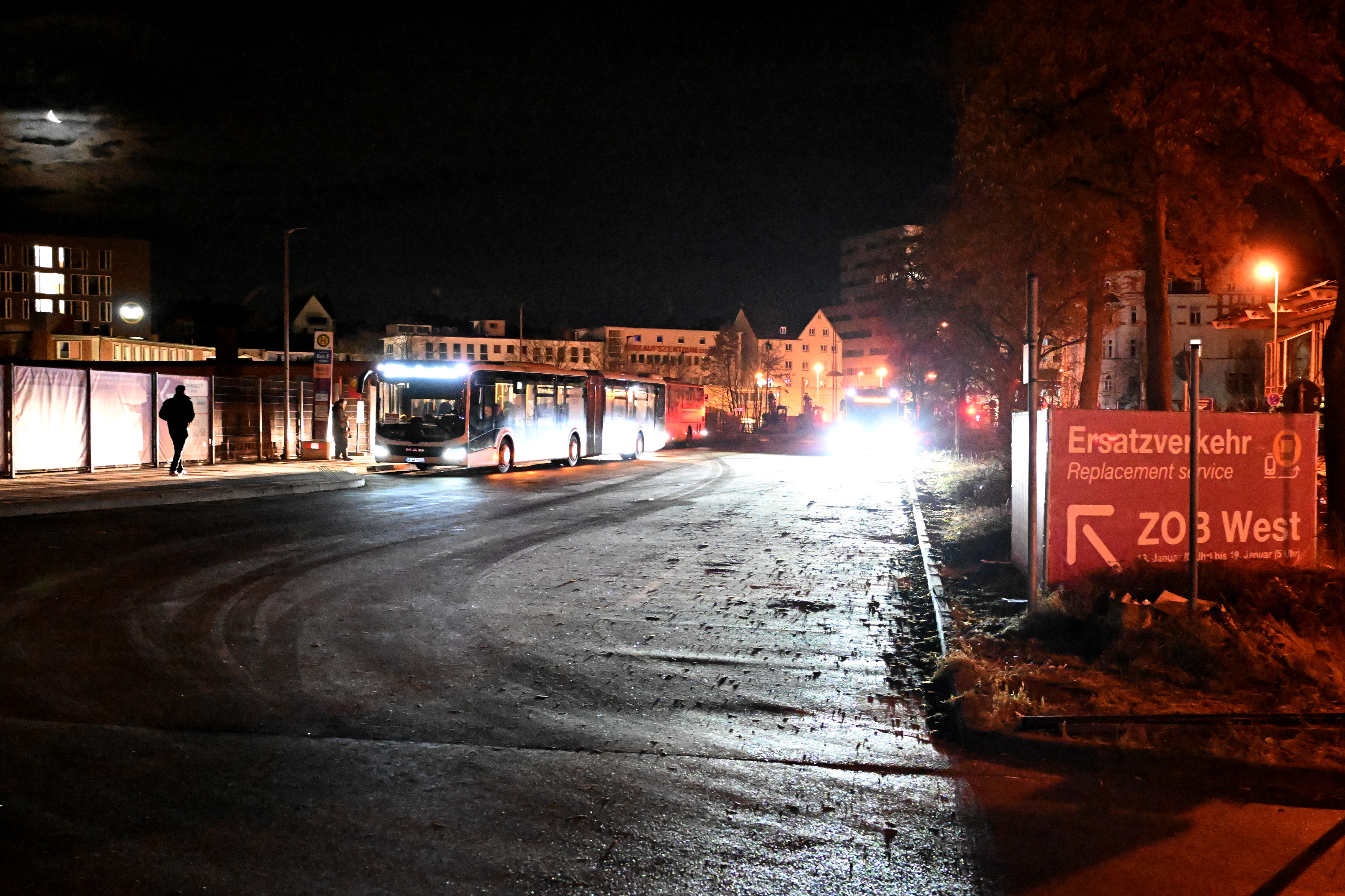 Die Deutsche Bahn bündelt wichtige Arbeiten an Gleisen und Weichen, um ein neues Stellwerk in Betrieb zu nehmen. Deshalb ist der Bahnhof für eine Woche teilweise gesperrt. Reisende müssen auf Busse umsteigen. Diese fahren vom ZOB West ab. Er liegt zehn Gehminuten vom Bahnhof entfernt. Doch am Dienstagmorgen herrschte dort Chaos. Der Busbahnhof lag komplett im Dunkeln, die Beleuchtung war außer Betrieb. Fahrgäste mussten sich mit ihren Handys den Weg leuchten. "Man sieht die Hand vor Augen nicht", klagte eine Pendlerin. Zudem war es glatt, weder Gehweg noch Fahrbahn waren gestreut. Pannen beim Schienenersatzverkehr