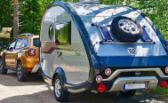Wohnwagen liegt auf der Seite