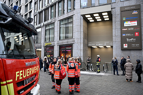Um die Passage und die darüber gebauten Gebäude schnell zu evakuieren, lösten die Einsatzkräfte einen automatischen Räumungsalarm aus. Daraufhin verließen mehrere Dutzend Mitarbeiter und Kunden die Läden. Auch Patienten und Personal aus den Praxen mussten draußen warten. Gemeinsam suchten Feuerwehr und Polizei nach der Ursache. Sie wurden auf der anderen Straßenseite fündig.