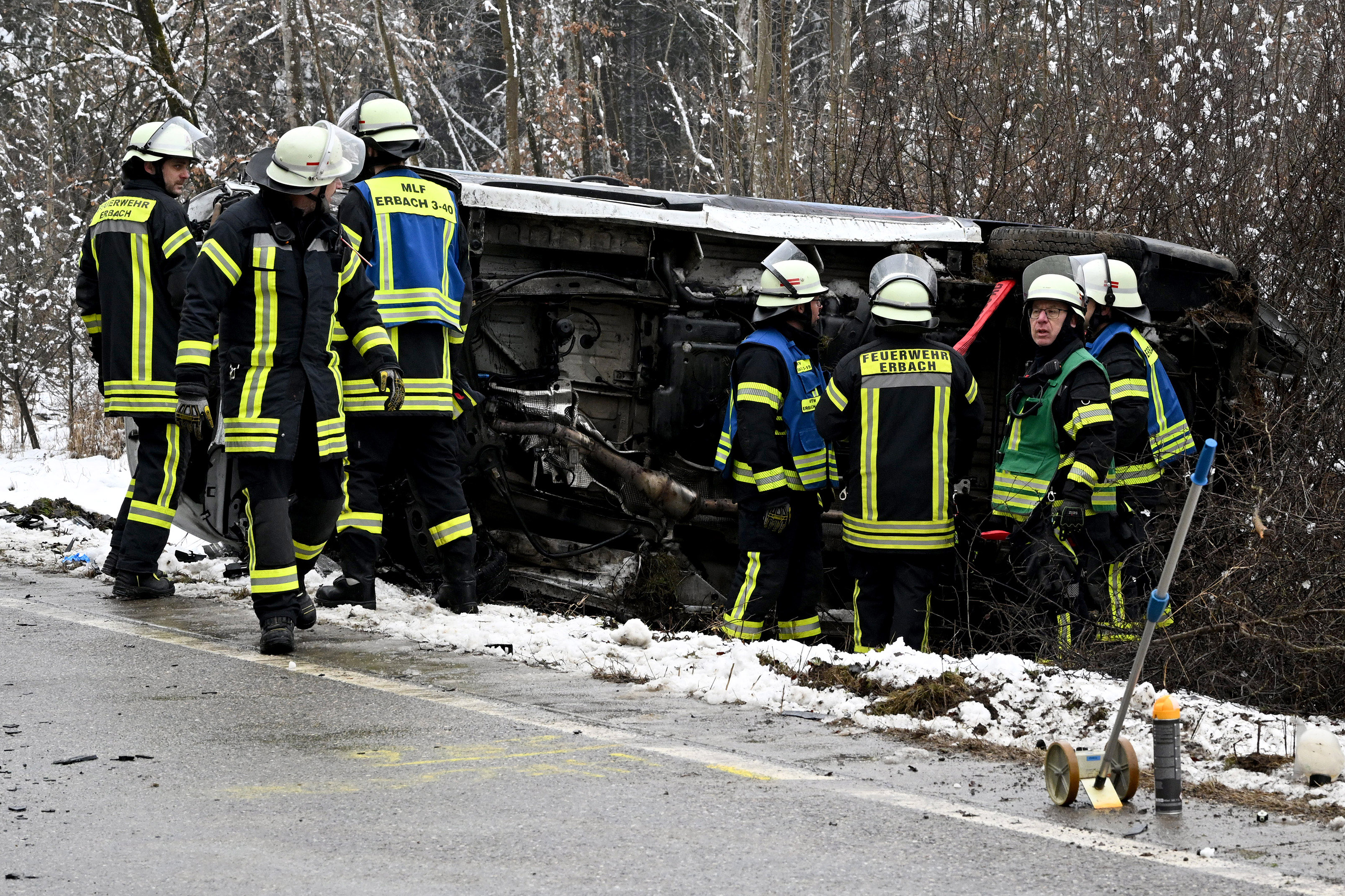 Die beiden Fahrer sowie der Beifahrer im Kleintransporter kamen mit schweren Verletzungen in Kliniken.