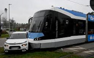 Auto nimmt`s mit Straßenbahn auf - 30 Fahrgäste kommen mit dem Schrecken davon