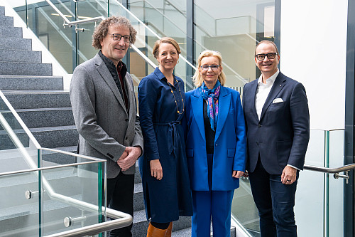 Beschreibung: Koperation für Ausbildungsqualität im Gesundheitswesen: V. l. Dr. med. Michael Glück, Prof. Dr. Mona Spiegel, Prof. Dr. Julia Kormann, Torsten Strehle