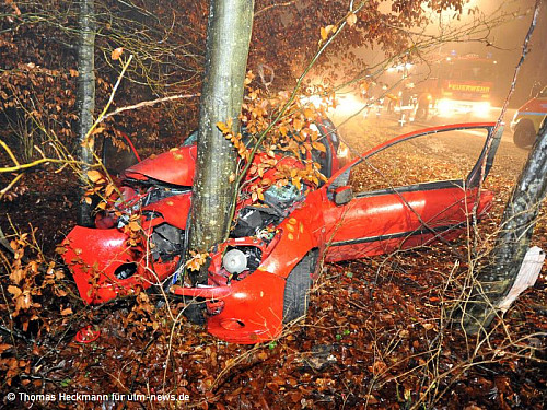 Frontal gegen Baum Schwere Verletzungen erlitt der Fahrer eines Kleinwagen bei einem Unfall am Mittwochabend südlich von Scharenstetten.