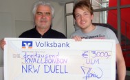 3000 Euro hat der Ulmer Magier Florian Zimmer in der WDR-Quizshow „NRW Duell“ gewonnen. Den Gewinn spendete er nun Walter Feucht und dessen Spendenaktion „Knallbonbon“.