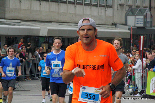 Bei bestem Laufwetter gingen am Sonntag über 800 Hobbyläufer auf den Rundkurs, den es fünf Mal zu laufen galt. Bei den Herren war der Triathlet Daniel Unger mit 32:44 Minuten der Beste. Es folgten Jürgen Austin-Kerl vom SSV Ulm 1846 in 33:20 und Markus Kaiser von der TG Biberach in 33:37. Die Plätze vier und fünf belegten Ralf Traub (Ulm) in 34:35 und Maxim Fuchs (Ulm) in 34:48.