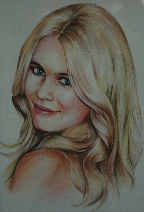 Ist sie es, oder ist sie es nicht? Ihr glattes, blondes Haar umspielt ihre unbedeckte linke Schulter, zu der sie ihr makelloses Gesicht wendet. Diese Augen! Diese Lippen! Dieses Lächeln! - Ja, sie ist es! Der Bildtitel verschafft letzte Gewissheit. „Claudia“ steht dort zu lesen. Claudia Schiffer ist für einige Wochen im Landratsamt Neu-Ulm zu bewundern – gemalt von Irena Voit mit Pastellkreiden auf Karton. Die Ulmer Malerin ist eine von neun Künstlerinnen und Künstlern des „Kulturvereins Akzente“, die derzeit Bilder, Halsketten und Holzreliefs im Foyer des Landratsamtes Neu-Ulm ausstellen. Schiffer-Porträtistin Irena Voit gefällt dabei auch mit einer Venedig-Impression, in der Wasser, Gondeln und Himmel in variierenden Blautönen dargestellt sind. Rusanna Gazarjan, die mit Ölfarben auf Leinwand arbeitet, fängt die Blicke des Betrachters vor allem mit einem Selbstbildnis, das sich aus drei Teilen zu einem etwa zwei Meter hohen Triptychon zusammenfügt. Daneben ist sie mit ihrem Bilderzyklus „Weisheit“, der zu einem Würfel formiert ist, und dem vor Kraft strotzenden Werk „Viehscheid“ vertreten.