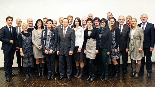 „Heutzutage wird oftmals der regelmäßige Arbeitgeberwechsel – auch Jobhopping genannt – als absolute Notwendigkeit eines jeden Karriere-plans gesehen. Dass dies nicht so sein muss, wird von Ihnen eindeutig widerlegt“, erklärte Alois Spiegler in seiner Laudatio und hob das lang-jährige Engagement der Jubilare hervor. „Vielmehr sehen wir in der auf Kontinuität ausgerichteten Personalstrategie die Grundlage für den Erfolg unserer VR-Bank. Und das ist zugleich Ihr Erfolg! Dafür möchten wir uns herzlich bei Ihnen bedanken“, führte Alois Spiegler weiter aus. Geehrt wurden Hannelore Keppeler, Gerhard Kotz (beide 45 Jahre), Margot Huber, Bernhard Klischke, Viktor Kreisel, Erwin Maier, Walter Rainer, Edith Straubinger (alle 40 Jahre), Harald Lanser (35 Jahre), Thomas Franke, Annette Frey, Hubert Stetter, Hannelore Vollwille, Georg Waschhauser, Susanne Zelinka (alle 25 Jahre), Elif Bicer, Ma-nuela Drabant, Annekathrin Fritzsch, Renate Göbel, Claudia Hönle, Mo-nika Linke, Jürgen Mertl, Andreas Miller, Karin Pfister, Christina Schnei-der und Tanja Weitmann (alle 10 Jahre).