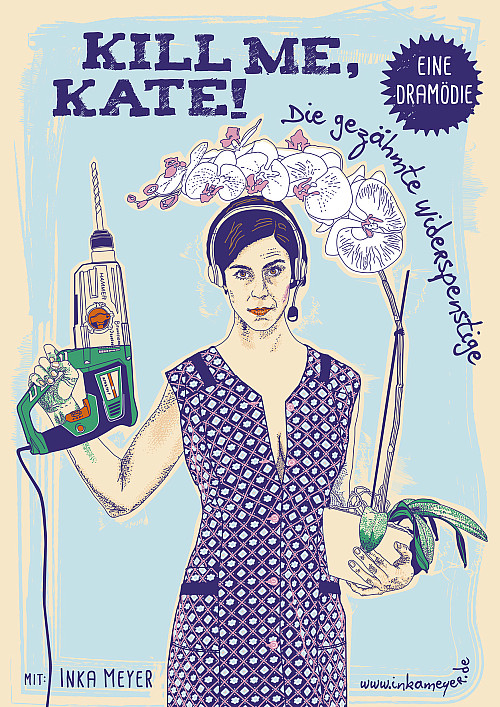 "Kill me, Kate" ist eine moderne Komödie über die Tragödie, heute eine Frau zu sein. Röhn-u.Saalepost: „Multitalent Inka Meyer begeistert im Bildhäuser Hof nicht nur die Frauen. Mit viel Witz, Scharfsinn und vor allem wortgewandt wurde hinterfragt, wie es Frauen, die Familie haben und arbeiten, heute so geht. Ein geniales Rundumpaket, das nach den ku?nstlerischen Sternen greift und mittendrin sitzt das Publikum, das sich vor Lachen biegt.“