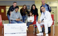 Einen Scheck über 800,- Euro zugunsten des Vereins „Friedensdorf International“ überbrachten am gestrigen Mittwoch Dr. Jürgen Bauer, 1. Vorstand des Eishockeyvereins VfE Ulm/Neu Ulm, Michael Bielefeld, Trainer der 1. Mannschaft, und Omar Rona, Geschäftsführer der Vision Hockey GmbH. Sie besuchten die Klinik für Unfall-, Hand-, Plastische- und Wiederherstellungschirurgie auf dem Oberen Eselsberg. Dort werden zurzeit die schweren kriegsbedingten Verletzungen der zehnjährigen Setara Hayatullah aus Afghanistan vom Ärztlichen Direktor Prof. Dr. Florian Gebhard und seinem Team behandelt.