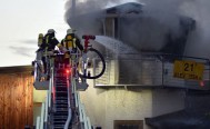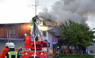 versorgt. Brandspuren waren an der Holzfassade bis zum ersten