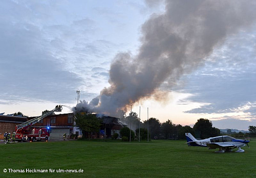 Feld gegen 04.20 Uhr das Feuer an dem Gebäude auf dem Erbacher Flugplatz. Beim Eintreffen der