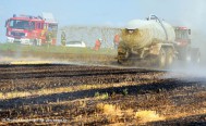 Zwei Hektar Feld abgebrannt - Landwirte und Feuerwehr im Löscheinsatz