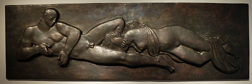 Beschreibung: Die Bayerische Landesstifung stellt der Stadt Neu-Ulm seit 1978 Dauerleihgaben von Edwin Scharff zur Verfügung, darunter das gut drei Meter lange Relief „Ruth und Boas“.