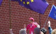Ein Europa ohne Grenzen sei ihr ein Herzensanliegen, erklärte Marlies Blume: "Dafür steh ich hin." Zuvor hatte Eberhard Simsch, der viele Studenten der Fachhochschule Ulm in Physik unterrichtet hat, erzählt, warum er sich für ein einiges Europa einsetzt. Die resignierte Behauptung "die Politiker tun doch eh, was sie wollen" lässt Simsch nicht gelten. "Dieses Wollen können wir beeinflussen." Dazu müssten die Menschen sichtbar ihre Meinung zeigen. Das Recht auf Demonstration und Mitbestimmung müsse genutzt werden, damit es nicht verlorengehe. Er schloss mit einem Zitat aus China: "Dass die Vögel der Sorge und des Kummers über deinem Haupt fliegen, kannst du nicht ändern. Aber dass sie Nester in deinem Haar bauen, das kannst du verhindern."