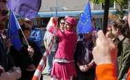 Ein weiß-rotes Absperrband diente der Kabarettistin Marlies Blume als symbolische Grenze mitten durchs Publikum bei ihrem Auftritt bei der "Pulse of Europe"- Kundgebung am Sonntagnachmittag auf dem Neu-Ulmer Petrusplatz. Mit dieser "Grenze" experimentierte sie im Zuge ihrer satirischen Betrachtungen über die schwäbische und die europäische Mentalität. Zur wöchentlichen "Pulse of Europe"-Kundgebung waren erneut mehrere hundert Teilnehmer gekommen.
