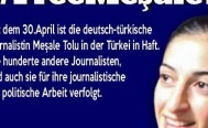 Nach mehr als zwei Wochen Polizeigewahrsam und Untersuchungshaft bekamen die Familienangehörigen von Mesale Tolu am Montag die Erlaubnis, sie im geschlossenen Frauengefängnis von Bakirköy zu einem einstündigen Treffen zu besuchen. Das berichtet Baki Selcuk vom Solidaritätskreis „Freiheit für Mesale Tolu“ in Ulm. Dagegen ist es Vertretern der Bundesregierung auch nach über zwei Wochen noch nicht gelungen, mit der inhaftierten Deutschen in Kontakt zu treten. Die 33 Jahre alte deutsche Übersetzerin und Journalistin aus Ulm und Neu-Ulm wurde vor zwei Wochen in der Türkei festgenommen. Der Solidaritätskreis plant auch für nächsten Freitag eine Kundgebung in Ulm für die Freilassung von Mesale Tolu.