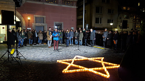 Beschreibung: Gedenkfeier zur Pogromnacht auf dem Weinhof in Ulm