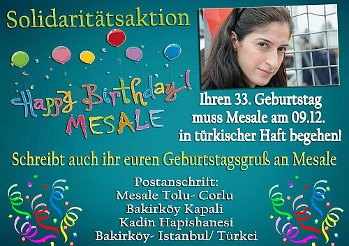 „Die Hoffnung auf das Schöne und Gute kann uns niemand nehmen“. Diesen Satz schrieb Mesale Tolu, an die wir heute ganz besonders denken, erst vor wenigen Wochen in einem Istanbuler Frauengefängnis.