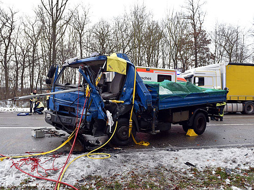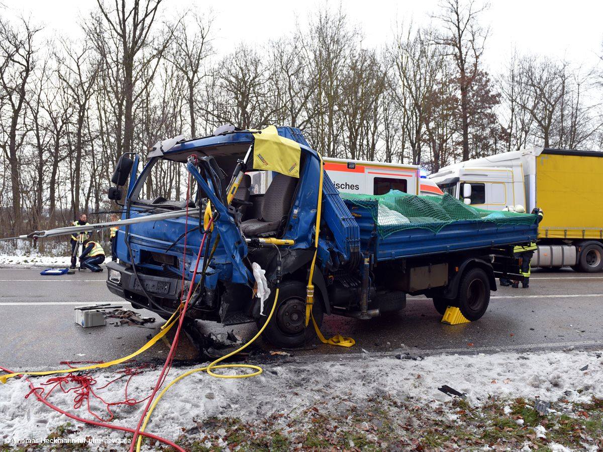 Zwei Lastwagen stoßen frontal zusammen - Lkw-Fahrer schwer verletzt