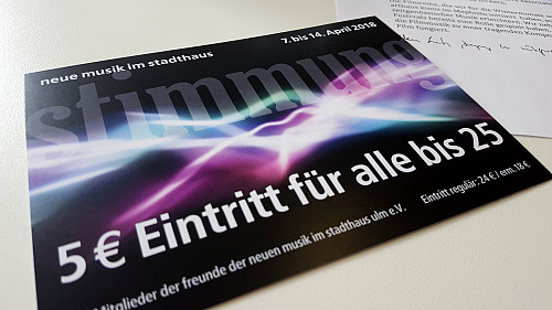 Karten (24 €/18€ erm.) für das Festival "Stimmung" mit neuer Musik im Stadthaus gibt es schon jetzt bei ulmtickets.