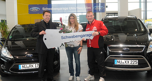 Die Boxerin fährt mit dem Auto nach Berlin. Mit einem Auto, das ihr Robert Imbrogno, Geschäftsführer der Schwabengarage und neuer Sponsor, nach der Pressekonferenz übergab. Rola El-Halabi erhielt einen Ford Fiesta und Trainer Jürgen Grabosch einen Ford Kuga der Schwabengarage für die täglichen Fahrten zum Training und zu Terminen. „Die Schwabengarage will Rola El-Halabi auf ihrem weiteren Weg unterstützen, weil sie eine großartige Boxerin ist“, betonte Robert Imbrogno.