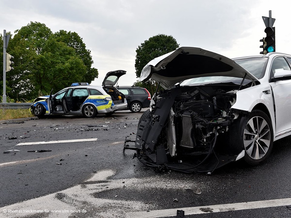 Sieben Verletzte bei Unfall mit Streifenwagen im Einsatz in Ulm