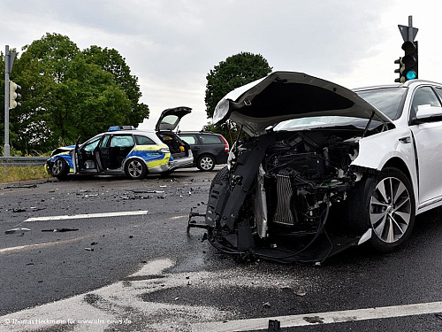 Insgesamt sieben Verletzte forderte ein Verkehrsunfall am Samstagabend im Ulmer Westen. Insgesamt fünf Fahrzeuge waren beteiligt, darunter auch ein Streifenwagen der Polizei auf Einsatzfahrt.